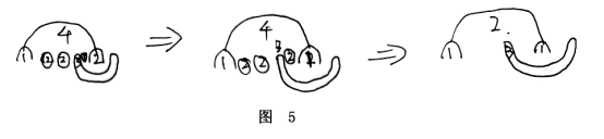 1.3之间若存在2,且所有2均对应A类国家,那么将③内封闭区域内1.2互换,若右侧封闭区域仍有B类国家,则根据引理1,用3、1两种颜色将全部B类国家染色,这时可以确认封闭区域内无颜色2的B类国家,然后再4与所有2互换,4消失即可得到3色地图。