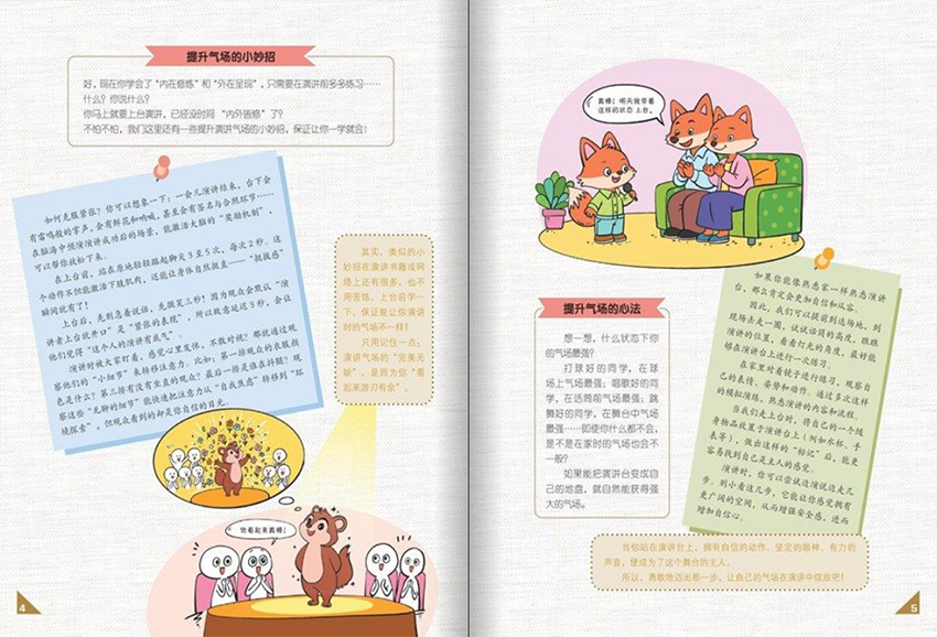 书中还设计了许多有趣的口才训练游戏和实践活动,如“故事接龙”“即兴演讲”等,孩子们可以在玩耍中锻炼口才,将所学的技巧运用到实际的表达中。这些训练不仅能够提高孩子们的语言表达能力,还能培养他们的思维敏捷性和应变能力,让他们在各种场合都能从容不迫地表达自己的想法。