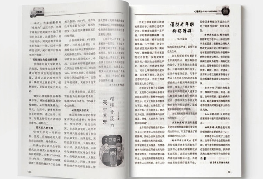 健康生活、心理家园、保健、旅游养生、编读往来。