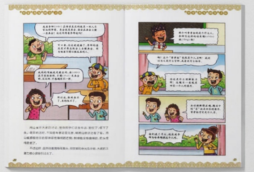 《漫画古诗词》杂志的独特之处,在于它将古诗词的学习从枯燥的背诵和机械的解读中解放出来。传统的古诗词教学,往往侧重于对诗句的逐字逐句翻译,以及对诗人背景和创作年代的简单介绍。这种方式虽然能提供一定的知识,但却很难激发读者的兴趣,尤其是对于那些缺乏古文基础的读者来说,古诗词仿佛是一座难以攀登的高峰。而杂志则巧妙地运用了漫画这一生动有趣的形式,将古诗词中的重点和难点融入到一个个逗趣的故事之中。通过夸张的画风、幽默的情节和生动的人物形象,它让古诗词变得鲜活起来。 杂志不仅在人物塑造上别具一格,更在对古诗词背景的解读上独具匠心。它通过故事的形式,将古诗词创作的时代背景、诗人的生活经历以及创作动机等元素巧妙地串联起来。例如,在解读王维的《山居秋暝》时,书中不仅描绘了诗中那幅空山新雨后、天气晚来秋的美丽画面,还通过一个关于王维隐居生活的故事,让读者了解到这首诗是在王维远离尘世喧嚣、追求内心宁静的背景下创作的。漫画中,王维在山林间漫步、与山中的村民交流、欣赏自然美景的情节,让读者仿佛跟随他一起走进了那个宁静的山居世界,感受到了诗人那种“空山新雨后,天气晚来秋”的闲适与宁静。