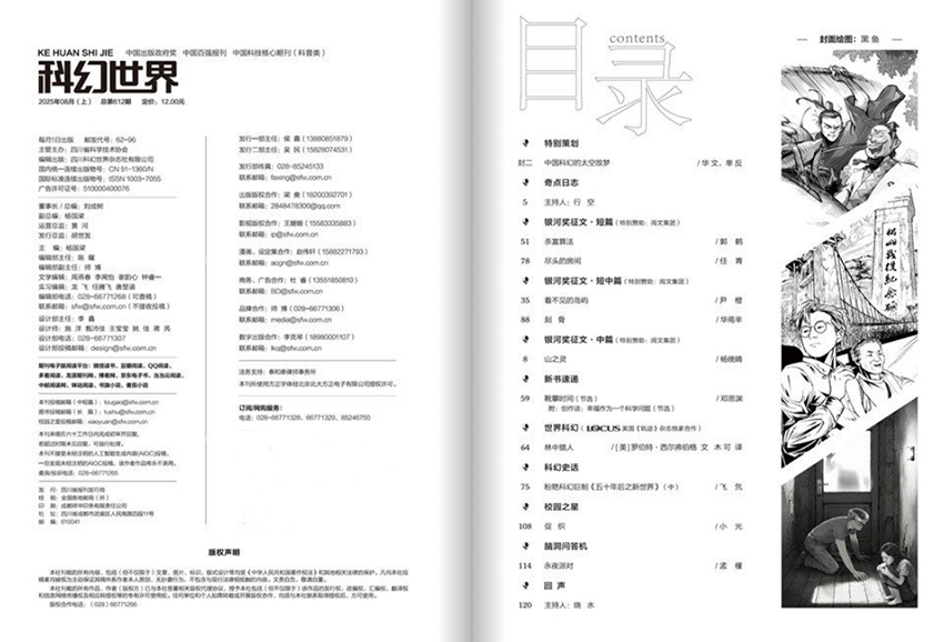 《科幻世界》始终高擎中国科幻文化的大旗,作为中国最具权威性与影响力的科幻类期刊,不仅见证了中国科幻从边缘走向主流的全过程,更以坚定的使命担当,为推动中国科幻事业的发展、激发公众科学热情、提升读者科学素养作出了不可磨 杂志以刊登原创科幻小说为核心,始终坚持“倡导创新思维,展示科学魅力”的办刊宗旨。它不仅为读者呈现国内外一流的科幻佳作,还积极追踪前沿科技动态,融合科学知识与文学想象,让读者在阅读中感受科技之奇、宇宙之广、未来之梦。其内容涵盖硬核科技、太空探索、人工智能、时间旅行、平行宇宙等经典主题,既有刘慈欣《三体》系列的恢弘史诗,也有王晋康、何夕、韩松等名家的思想深邃之作,更有青年作家如陈楸帆、夏笳、江波等人的先锋实验,构成了中国科幻创作的完整图谱。