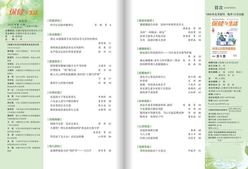在信息爆炸的时代,健康谣言与伪科学层出不穷,《保健与生活》始终将内容的科学性与权威性视为生命线。杂志背靠国内外顶尖的医学专家委员会,每一篇文章都经过严格的同行评议与事实核查,从流行病学数据到临床医学证据,从营养学基础到中医药理论,均坚持循证医学原则,确保信息准确无误。