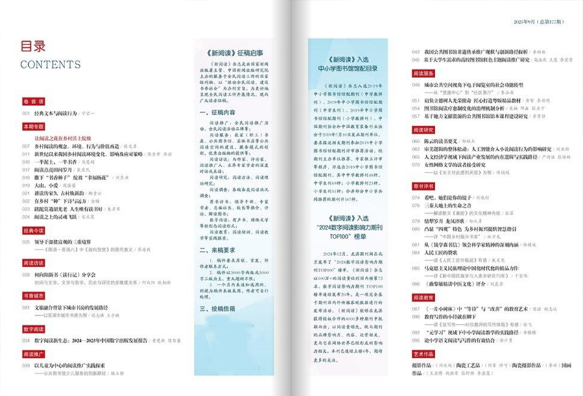 《新阅读》杂志是国内推动全民阅读活动的重要载体和大众阅读的权威指南。作为一份兼具思想深度与文化品位的综合性刊物,杂志始终坚持以“为广大读者服务,为幸福人生导航”为核心办刊宗旨,在总局的关怀与指导下,积极践行文化使命,致力于推荐优秀作品、引领阅读时尚,推动中国特色社会主义文化的繁荣发展。 本刊定位为大众阅读的引领者,聚焦文史类、时政类等高品位内容,所刊文章均选自国内正式出版的图书、报纸及期刊,经过专业编辑团队的精心筛选与整合,确保内容健康、语言生动、富有教益且感染力强。通过“让精品阅读走进大众”的办刊方针,杂志不仅提升读者的文化素养与精神品位,更致力于弘扬社会主义核心价值观,传承中华优秀传统文化,构筑当代中国人共有的心灵家园。
