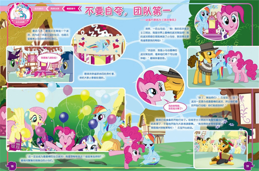 作为面向4-12岁儿童的优质读物,杂志始终以“传递友谊与正能量”为核心价值。内容创作严格遵循儿童心理发展特点,通过 Twilight Sparkle、Pinkie Pie 等性格鲜明的角色,在奇幻冒险中融入情绪管理、团队合作等成长主题。同时注重教育性与娱乐性的平衡,例如“动画制作揭秘”专栏用通俗语言解析分镜设计与配音过程,激发孩子的艺术创造力;定期举办的读者征文活动,则为小粉丝提供了展示绘画、写作作品的平台,形成良性互动生态。