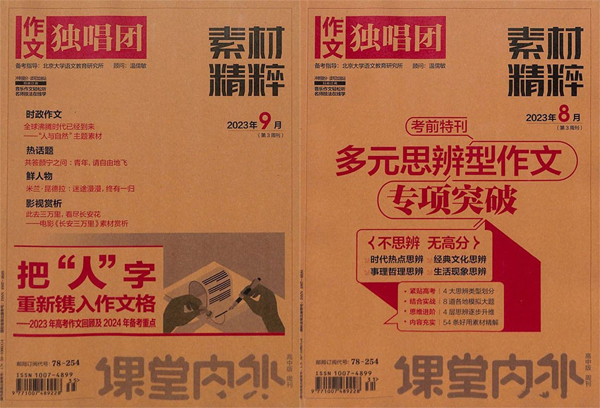 凭借专业的内容策划与实用的写作指导,《作文独唱团》不仅成为学生提升作文成绩的实用工具,更在潜移默化中培养其人文素养与社会洞察力。杂志发行覆盖全国,以其“干货全面、新意十足”的口碑深受师生认可,多篇文章被选为学校作文教学案例,持续为高中作文教育注入活力,助力无数读者实现“笔下生花,梦想有声”的写作目标。