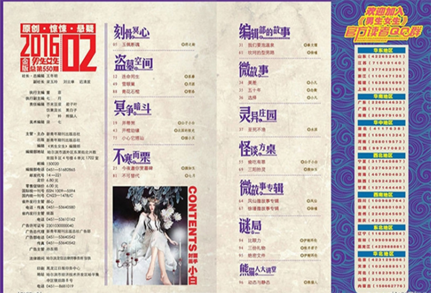 《金版悬疑》以硬核恐怖、奇幻玄异题材为主,涵盖穿越、灵异、新武侠等类型,每期80页全彩印刷,搭配特约漫画家创作的惊悚插图,营造沉浸式阅读体验。代表栏目如“鬼味少女”系列、“四方角招魂”等长篇连载,以多线叙事与人性反转引发读者热议。《银版青春》则聚焦校园情感、时尚娱乐与心理成长,设置“TOP赏原创小说”“时尚美容指南”“心理测试工坊”等栏目,通过96页精致排版与原创漫画,传递青春正能量。月末版作为泛幻想阅读志,自2009年推出后,以“圣米大陆”世界观为框架,收录玄幻、热血、言情等类型小说,力邀圈内顶尖画手定制插图,打造沉浸式异世界体验。 杂志月发行量突破50万册,邮发代号覆盖全国,市场占有率连续多年位居青少年期刊榜首。读者调研显示,85%的受访者认为其内容“贴近青少年心理”“兼具娱乐性与启发性”,60%的读者表示通过杂志结识同好,形成跨地域的读者社群。2013年推出的“读者票选奖励制度”,进一步激发创作活力,优秀稿件稿酬提升至150元/千字,吸引大量新生代作家投稿。