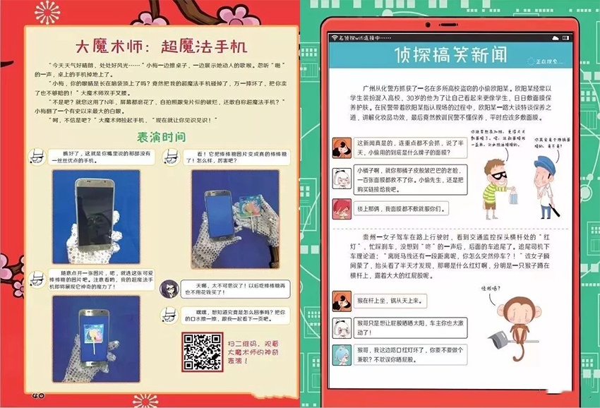 杂志内容丰富多元,设有“漫画派对”“少年最推理”“奇案异事”“第一现场”“联盟会议厅”“爆笑时间”等核心栏目。其中,“漫画派对”以全彩漫画形式呈现推理故事,如《国王之死》《花牌占卜》等,结合惊悚元素与幽默吐槽;“少年最推理”聚焦真实案件改编的逻辑谜题,引导读者通过细节推理破解真相;“奇案异事”则收录国内外未解谜案,激发好奇心。此外,杂志融入趣味互动环节,如“测一测”“侦探搞笑新闻”及魔术教学视频,兼顾知识性与娱乐性。