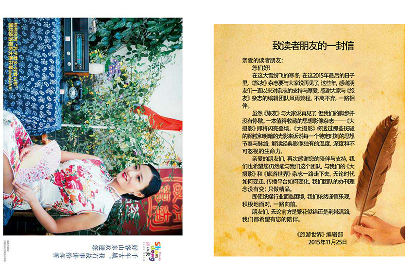 《旅友杂志》定位为高端自助游与摄影群体的深度指南。以“旅游世界·好客山东专版看世界,旅游为生活”为核心理念,聚焦家庭自助游、自驾游及摄影旅行需求,致力于为读者提供兼具实用性与人文关怀的旅游资讯。杂志通过“旅友视界”“特别策划”“光圈”等特色栏目,构建起集目的地深度报道、行程规划、摄影艺术于一体的内容体系,成为国内旅游领域兼具专业性与亲和力的标杆刊物。