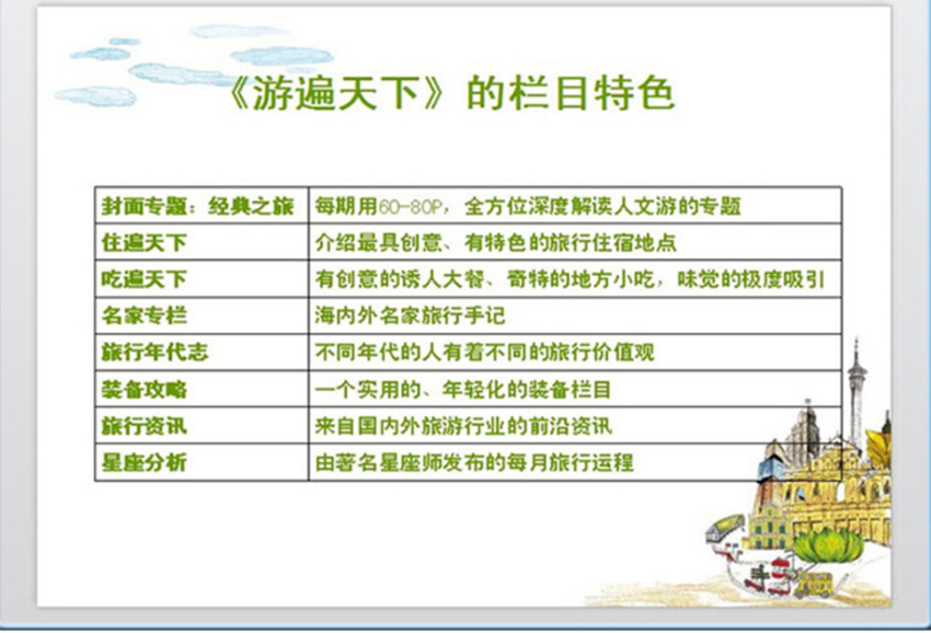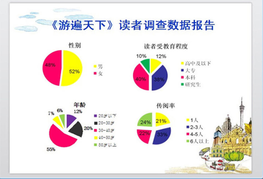 《游遍天下》的读者以25-45岁、具有较高消费能力的中产阶级为主,涵盖企业高管、文化从业者及自由职业者等群体。杂志通过高端选题策划与精准市场推广,在旅游产业链中形成广泛影响力,其内容常被高校图书馆收藏,并成为上海、广东等地旅游从业者的参考读物。例如,2014年推出的“德国艺文志”专辑,以莱茵河畔的浪漫主义、法兰克福的建筑美学等主题,为读者提供深度文化旅行指南,引发市场热烈反响。