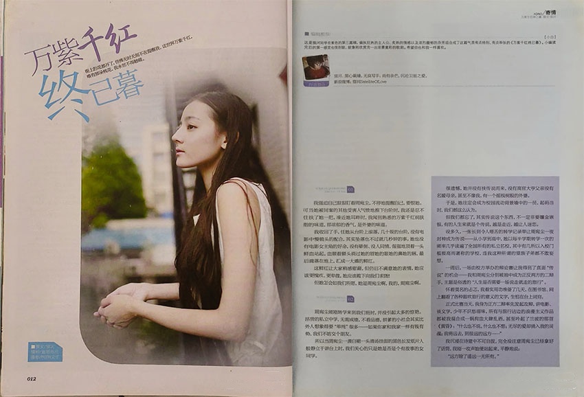 杂志首创“青春映话王国”概念,以“文字构筑青春梦工厂,影像记录90新生活”为核心,开创了文字与影像结合的独特呈现方式。内容上涵盖小说、散文、诗歌等多元体裁,既聚焦青少年成长中的学业压力、人际关系、青春迷茫等现实议题,又融入时尚、音乐、影视等流行文化元素,形成“文学性+潮流感”的双重特色。其版面设计简洁大方,图文配比恰到好处,让读者在阅读文字的同时享受视觉盛宴。 在作者培育方面,《紫色年华》堪称青春文学的“造星工厂”。创刊六年间,成功推出7号同学、彭湃、木子喵喵、水阡墨等数十位深受90后喜爱的明星作家,旗下签约作者、摄影家、书模超百人。代表作《听说我们不曾落泪》《我们终将独自长大》《竹马钢琴师》等单册发行量均突破20万册,“紫微青春馆”图书品牌更形成“告白三部曲”“九国夜雪”等系列IP,累计发行量超3000万册,读者覆盖5亿人次。