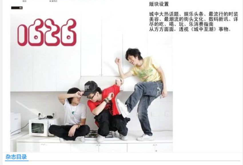 杂志依托内容优势拓展多元业态:1626商城:作为本土原创设计师平台,整合服装、配饰、数码家居等潮流商品,通过线上线下融合模式辐射城市青年生活场景。城中至潮网:作为杂志的互联网延伸,网站构建资讯、社区、商城、论坛四大板块,提供实时潮流资讯与互动社区,强化信息时效性与用户粘性。