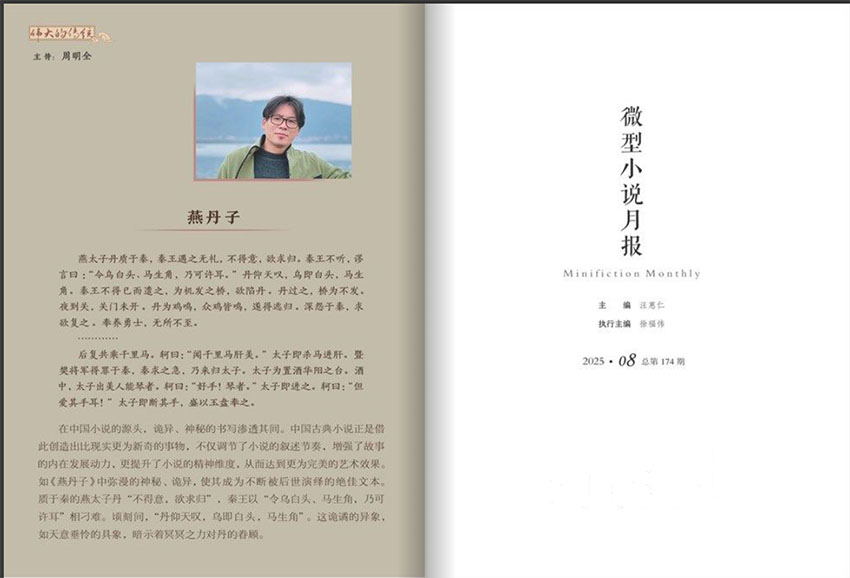 《微型小说月报》是由天津市作家协会与天津出版传媒集团联合主办、中国微型小说学会及世界华文微型小说研究会协办的纯文学月刊,国内统一刊号为CN12-1418/I,国际标准刊号为ISSN1674-8093。自2010年创刊以来,该刊以“短小精悍、以小见大”为核心理念,专注于微型小说(小小说)的创作与传播,已成为中国微型小说领域的重要平台。