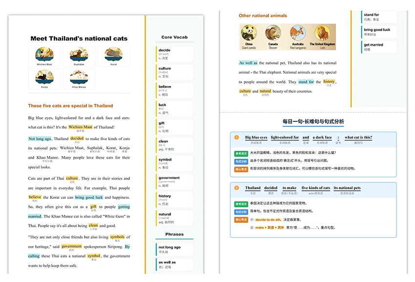 海量的地道英文文章,是提升阅读速度和理解能力的最佳途径。学生在泛读中拓宽知识面,在精读中掌握语言点。每期报纸都配有由外籍专家录制的美音音频,涵盖所有文章甚至完形填空。学生通过扫码即可随时随地进行听力训练和跟读模仿,有效锻炼语感,提升口语表达能力。