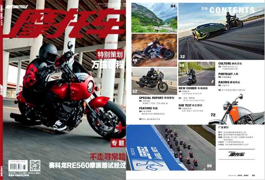 在内容方面,杂志主要包括国内外摩托车赛事、测试评测、新车资讯、改装技术、骑行历程、行业新闻、文化活动等多个版块。无论从文字、图片、结果等方面都非常详实,可谓是受国内摩托车爱好者欢迎的良师益友。一方面,《摩托车》杂志为读者提供了摩托车文化交流的平台,为行业内的供应商、制造商和买家提供一个有效的沟通和联系途径。另一方面,《摩托车》作为一个专业性、权威性杂志,致力于通过报道摩托车领域的新闻、测试评测、技术创新等各方面的内容,为广大消费者提供一个选择和购买摩托车产品的参考建议。