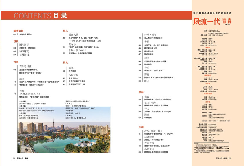该杂志旨在为青春有为的青年读者提供最全面、最前沿、最生活化的时尚、美容、健康、文化、情感等内容的读物。致力于为年轻人打造各种各样的人生热点话题和个性化专业栏目,突出时尚前沿、活泼灵动、独具特色、大众化特点,集新闻时事、社会民生、消费服务于一体。每期杂志都会以新的视角和新的形式,带给读者一个独特的生活方式。