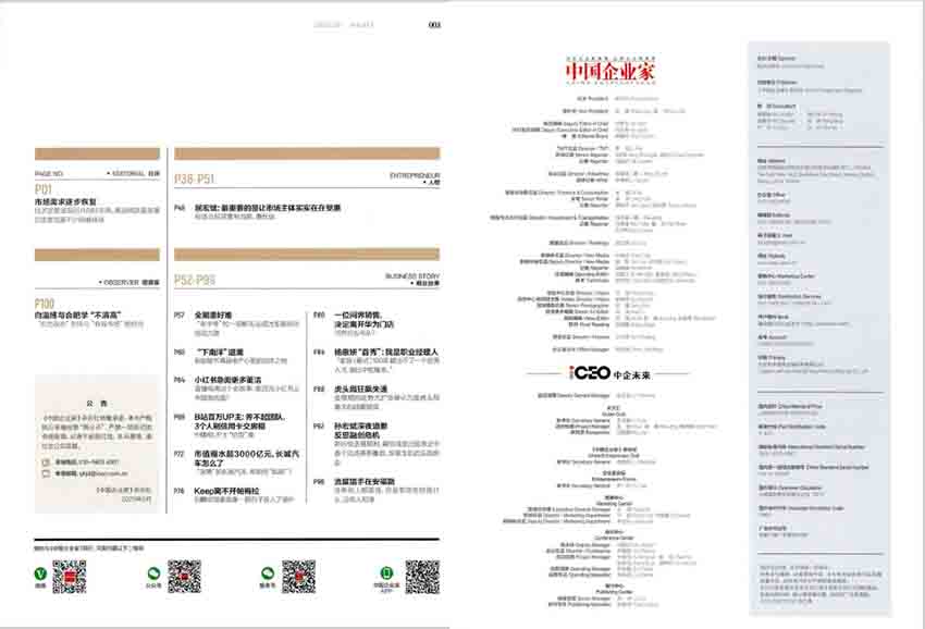 《中国企业家》杂志是中国顶尖的商业管理杂志之一,由《财经界》杂志社出版发行。该杂志是中国大陆第一份商业杂志,可以为商业界的精英们提供更加权威、专业和深度的解读和分析信息,是商界精英必备的资讯和训练手册。杂志的核心读者群体是各个行业的企业家、高管以及投资人,也是广大高端商务领袖和商业精英们必读的商业杂志之一。其内容包含商业策略、管理案例、人才培训、市场研究、融资投资、并购重组等多方面内容,并将重点关注海内外经济活动、政治经济趋势和商业热点话题,推荐最新颖的理念和实践。