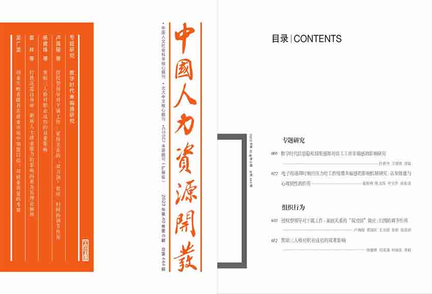 《中国人力资源开发》主要栏目:特稿、专题、研究述评、组织管理、案例研究、政策分析、劳动关系。