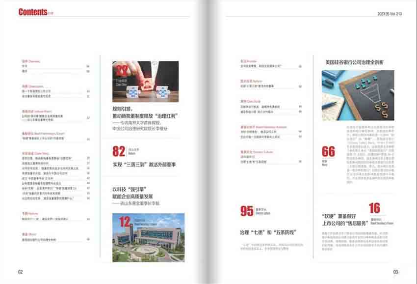 《董事会》主要栏目:调查、董事圈、资讯、董事圆桌、收购•兼并等。