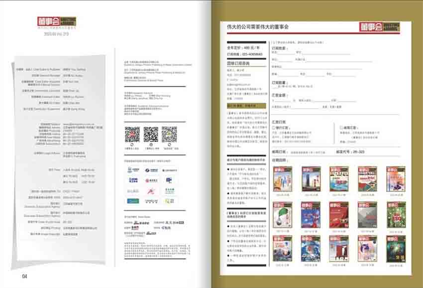 《董事会》杂志,是中国惟一一本以公司治理为核心内容的专业期刊。杂志致力于中国公司基业常青,以商业顶层的政治和智慧,洞察全球治理潮流、透视中国政经大势、解读公司高层政治、提供本土原生案例;以全球视野审视中国公司治理改革和董事会建设问题,为企业高层战略决策、管治体制机制创新、增进核心竞争力,提供最新理念和有益借鉴。在追求"三性一化",即通俗性、案例性、学术性及本土化的道路上奋勇前行。