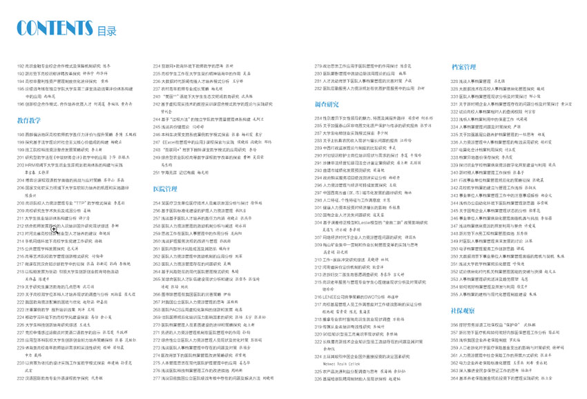 《人力资源管理》主要栏目:管理研究院、前沿汇、绩效•薪酬、人才开发、论坛、案例、实务、资讯、高校管理、医院管理、教学与保障、管理研究、管理实务、组织管理等。