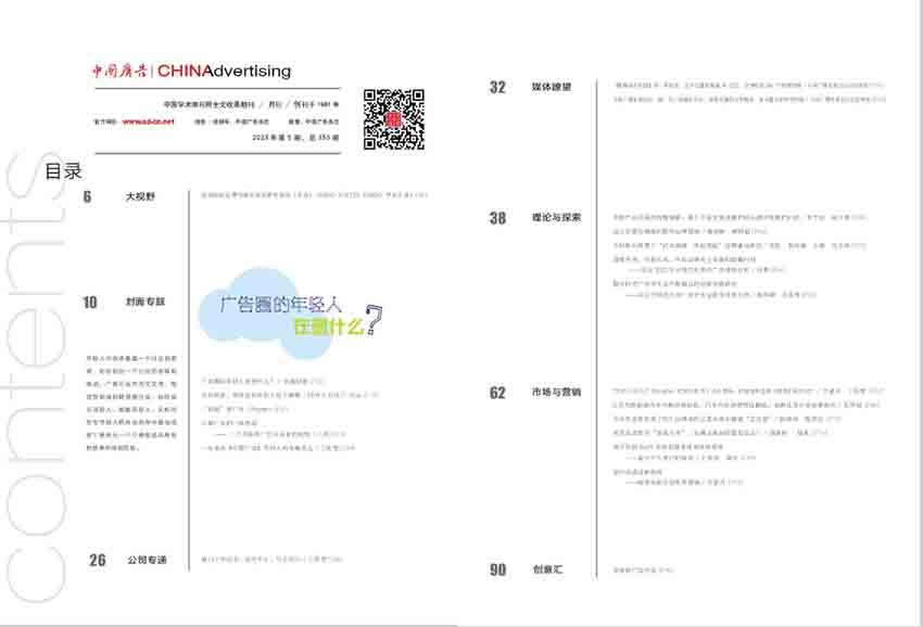 《中国广告》主要栏目:广告研究、中国广告论坛、个案分析、品牌透视、海外广告等。