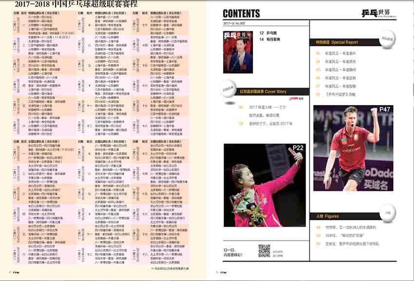 杂志的内容设计,以国际乒乓球界的新闻、赛事情报、评选每月最佳球员、重要赛事盘点、技术探讨等多个方面内容为主线。同时,杂志还展开了大量赛事的报道和各大球星的介绍,充分介绍了他们的技巧、表现以及他们对乒乓球文化的贡献。此外,杂志还为球迷提供了关于搏击拳击运动和羽毛球等运动项目的相关报道,以增加读者的知识面,扩大阅读群体;同时还推出年度品牌评选等活动,促进了乒乓球运动在品牌建设方面的发展。