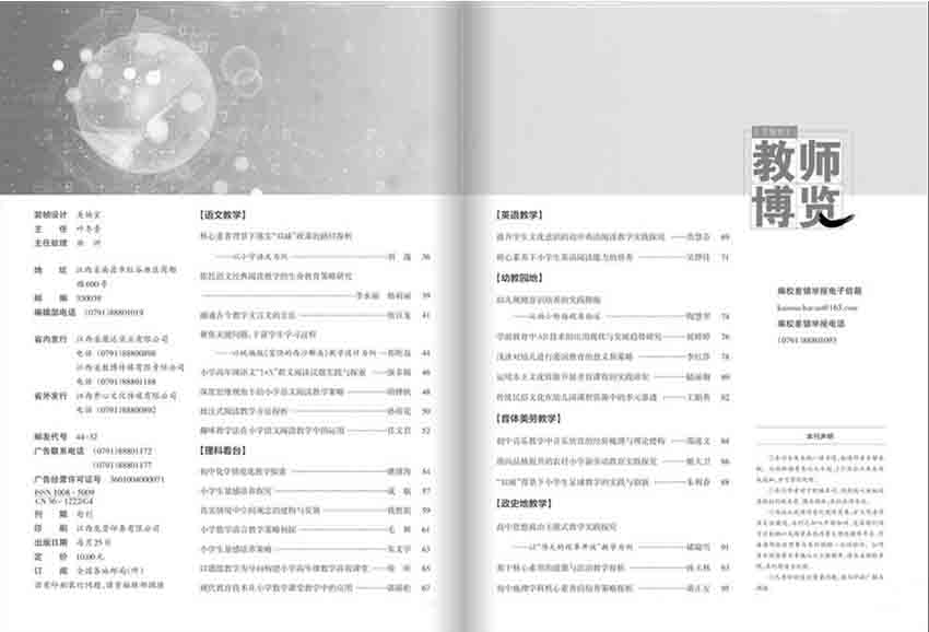 《教师博览》杂志是教师职业发展的重要媒介和学术平台,致力于推进教育科研与实践的对接,为广大教师提供更加系统、全面、专业、实用的教育理论知识和实践经验,不断探索新的教育研究领域,为教育事业的发展和进步贡献自己的力量。