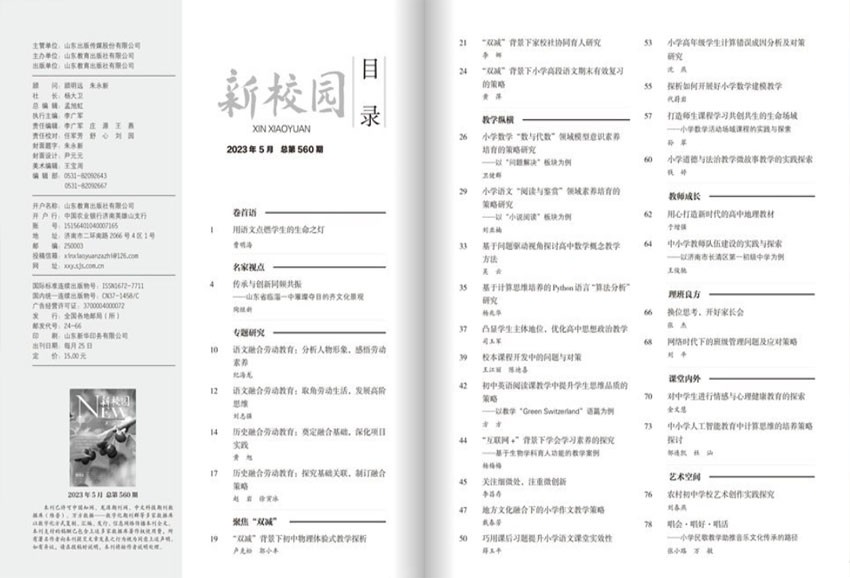 《新校园》主要栏目:基金项目高教论坛、硕博论剑、职教园地、成人教育、外语天地、教学探索等。