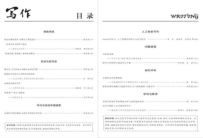 《写作》为国内外公开发行的国家级核心期刊,现已出版436期。作为写作学科核心期刊的《写作》杂志,自创刊伊始便以“普及写作知识,提高民族素质”为己任,以“传播科学理论,促进写作学研究不断深入发展”为办刊宗旨,用科学发展观统领思想,严格筛选、编辑、审定每一篇文章,确保刊发文章格调高雅且具有较高的学术性,是一本集学术性和实用性于一体的杂志。近年来《写作》杂志在既定办刊方针的指引下,不断挖掘、拓展栏目的内涵和外延,使《写作》杂志的内容更显丰富和立体化。