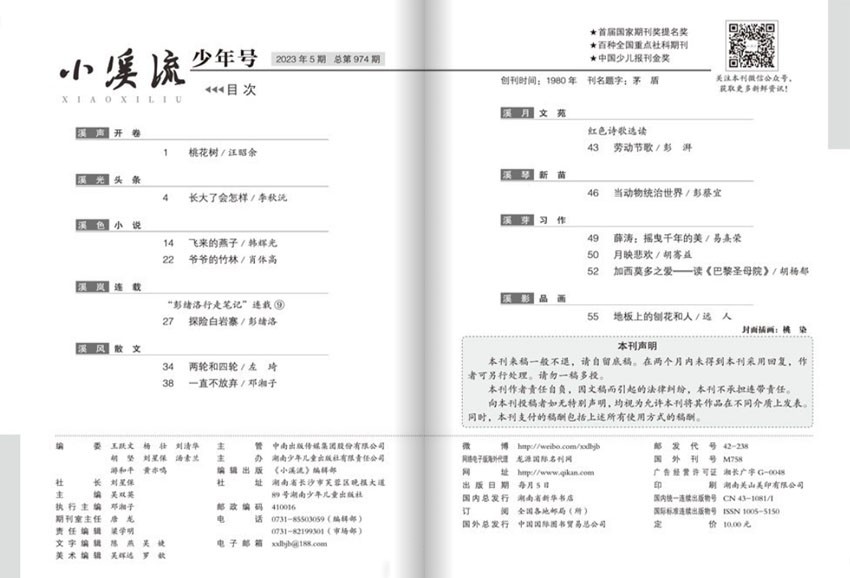 《小溪流》主要栏目:小海狸伐木、梦幻童话、“外星人”的南瓜蜜糖、大提琴和梨花姑娘、故事果冻、风的舌头、经典故事荟、蚌孩子、花的声音、等待、昆虫的世界、昆虫们的对话、新书连连看等。