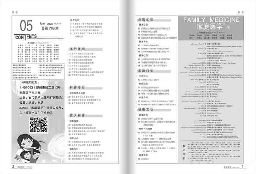 《家庭医学》是中国知名的综合性医学期刊,其主要内容涵盖了流行病学、内科学、外科学、妇产科学、儿科学、心理学及中西医结合等方面的知识,并侧重于为医生和患者提供准确、及时、高效、实用的医疗信息和健康知识。该杂志致力于为广大读者和医学工作者提供前瞻性、实用性、权威性的知识,维护国民健康,提高社会文明程度和文化素质。