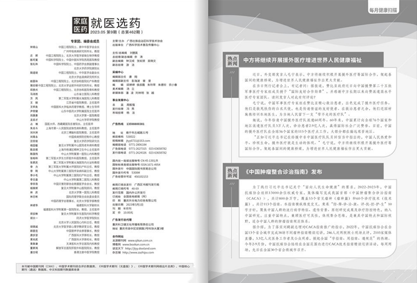 家庭医药杂志还会定期邀请权威专家和医生共同探讨和交流医学领域内的最新发现、技术、药物以及治疗方案,以期为读者提供更准确、科学、实用的健康信息。杂志致力于传递家庭医生必备的知识和技能,以及预防医学方面的知识和技能,为普通家庭提供更全面、更实用的健康知识和生活建议,帮助大家健康生活,享受美好健康的生活。