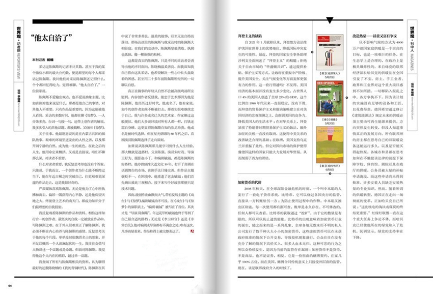 总之,《南方人物周刊》是一本具有深度和影响力的人物类杂志,以独特的视角呈现各种人物故事,关注中国各地社会斑斓多彩的侧面,记录各行各业中的普通人和异数人的生活故事。该杂志有广泛而深入的社会背景和历史文化背景,对于记录中国社会和文化的发展有着重要的作用。它注重新闻报道、调查报道、人物故事和文化评论,提供给读者丰富多彩的深度阅读体验。