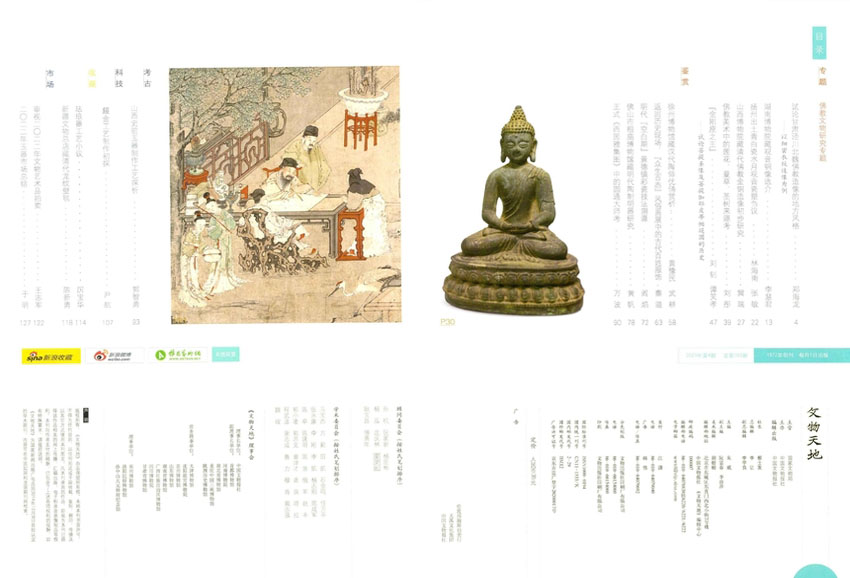 《文物天地》主要栏目:人物、鉴赏、考古、收藏、市场、资讯。