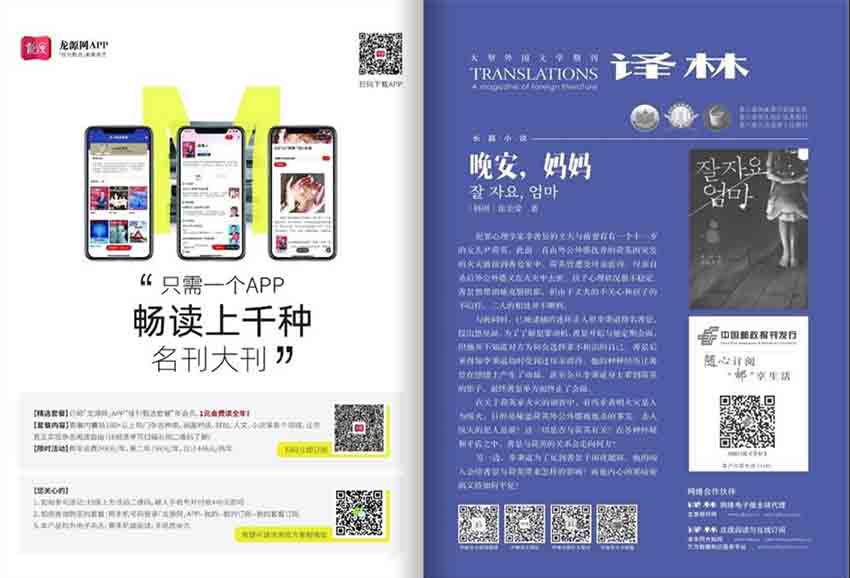 《译林》杂志是一本以文学作品、文化、生活、人文等为主要内容的文化类杂志,由中国译文出版社出版。它是一本面向广大读者,主要涉及文学、历史、哲学、社会科学等多个领域的综合性杂志,旨在展现世界文化的多样性、展示古今中外的人文风貌以及传递人类智慧和文化价值。该杂志每月出版一期,拥有超过50万的发行量,广泛海内外读者群体。