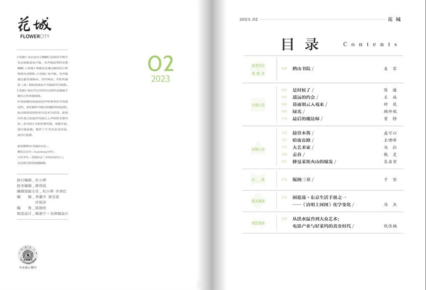 《花城》主要栏目:短篇小说、散文随笔、长篇小说、中篇小说、诗歌、实验文本等。