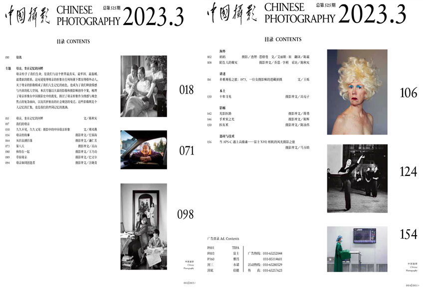 杂志介绍国内外最新的摄影展览和相关活动,并对展览作品进行精准的评价和解读。展示国内外优秀的摄影作品和摄影师的创作,以及各类摄影作品的技术性和创造性特征。介绍最新的摄影技术和技能,分享摄影技巧和经验,并提供摄影器材的评测和指南。